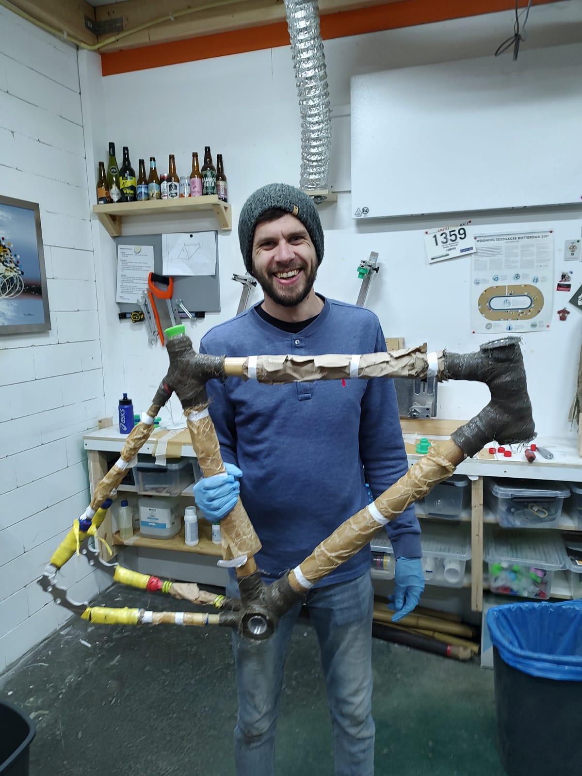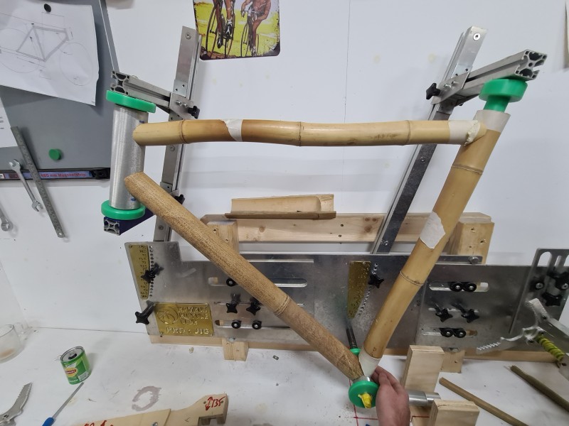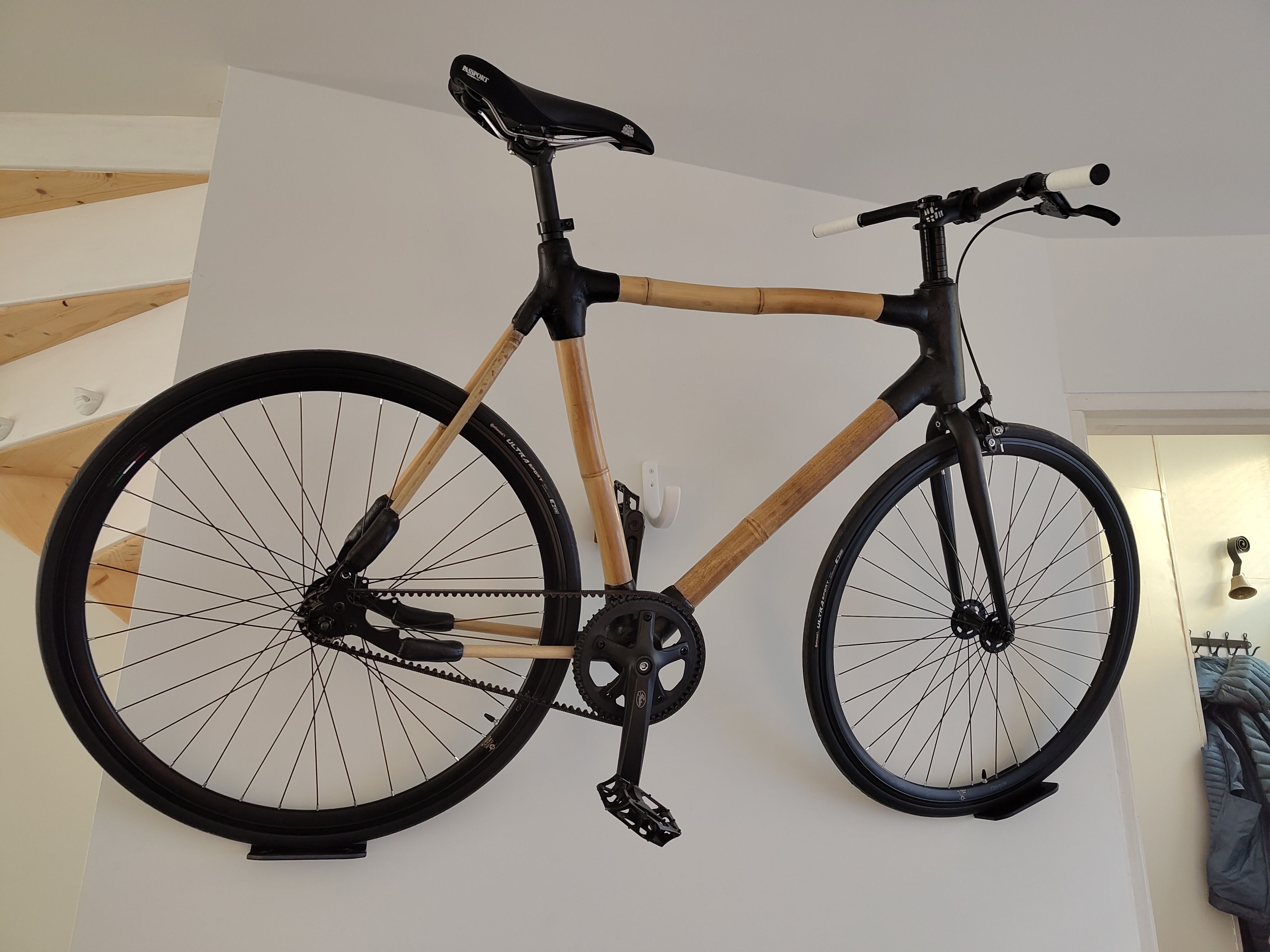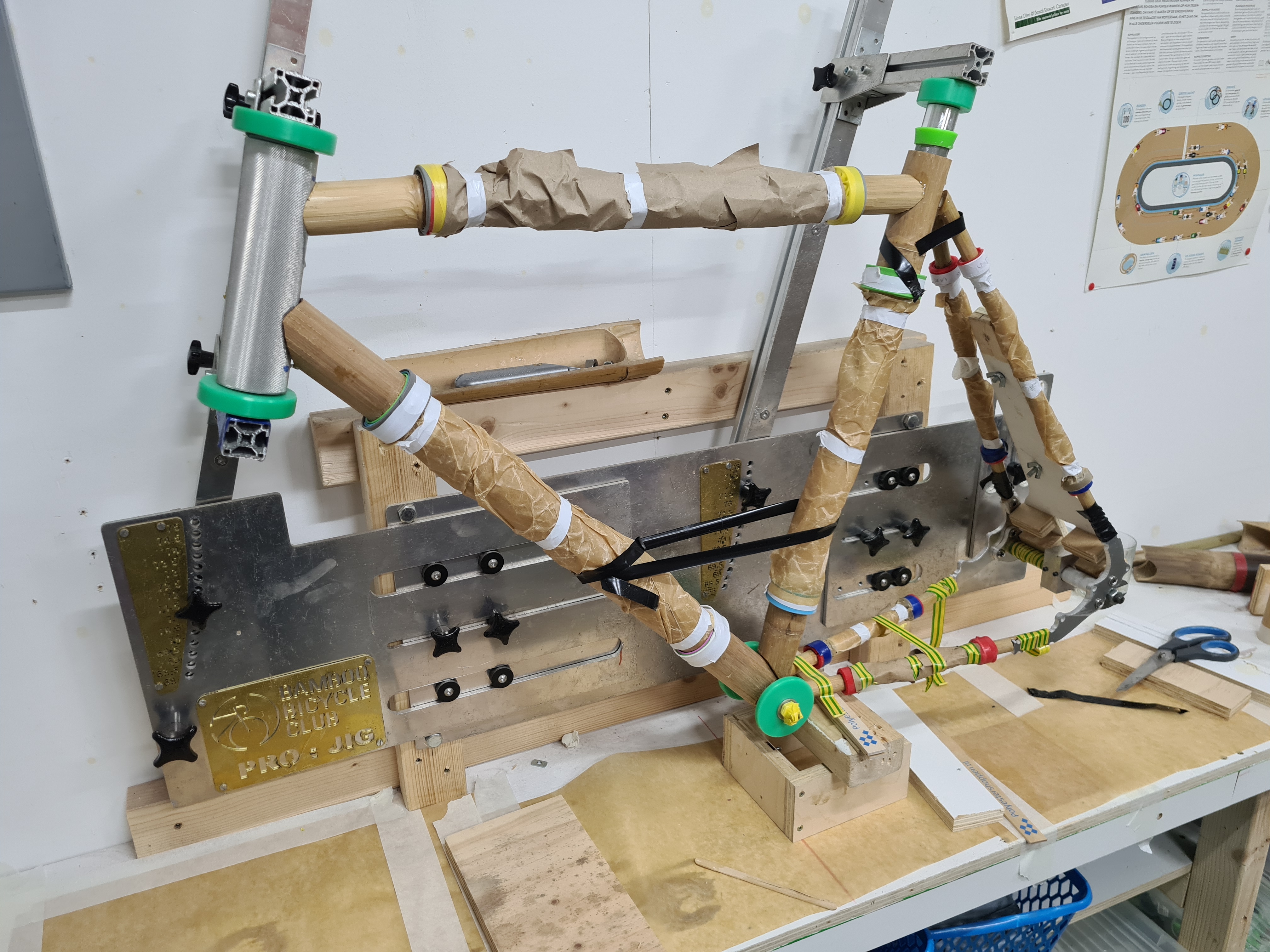 My gravel bike built from bamboo culms, joined with flax and epoxy resin at the nodes. Assembled at a Bamboo Bicycle Club workshop and completely hand finished in spare time.