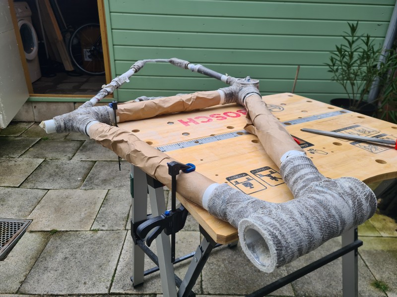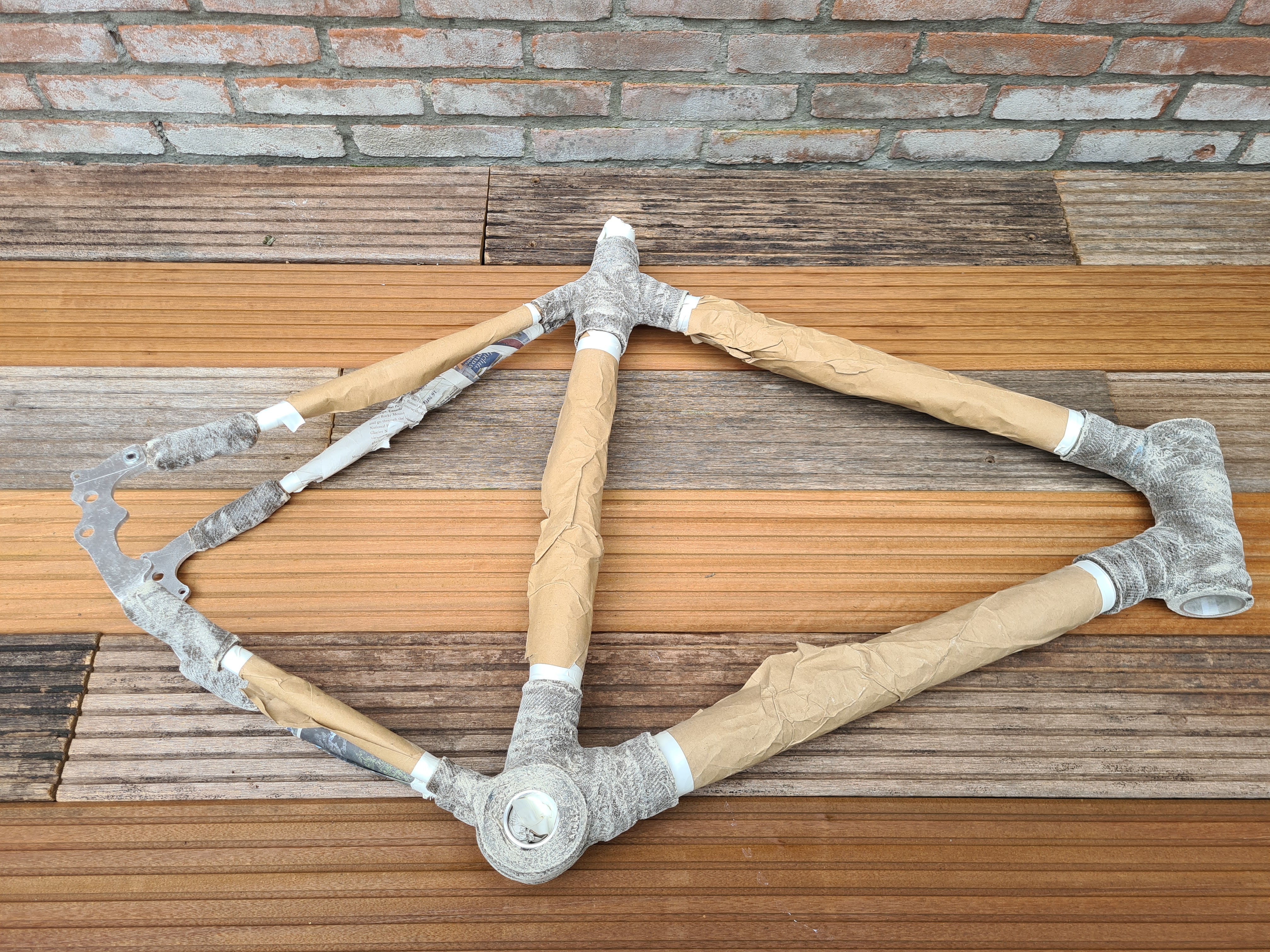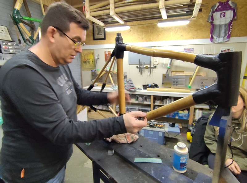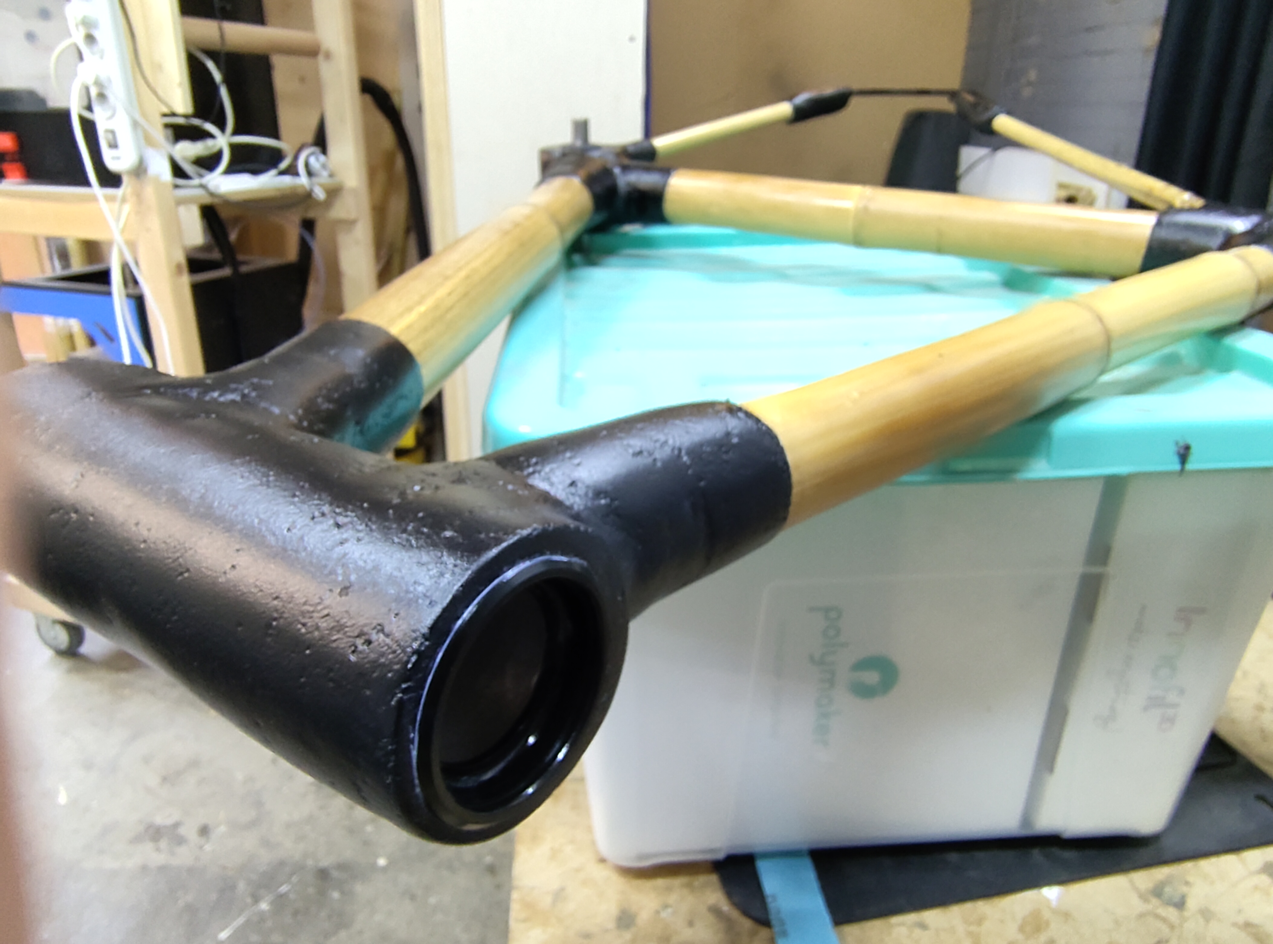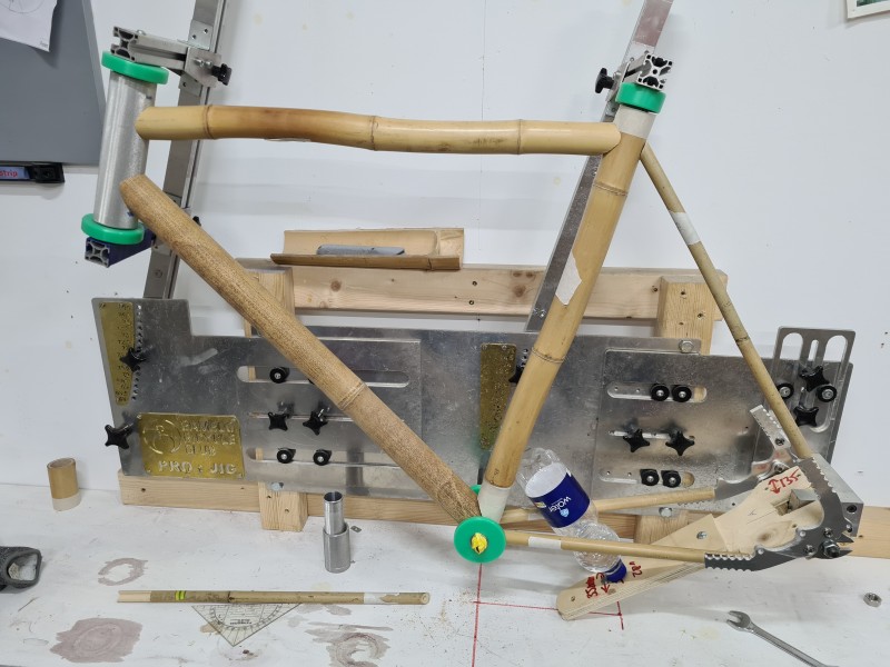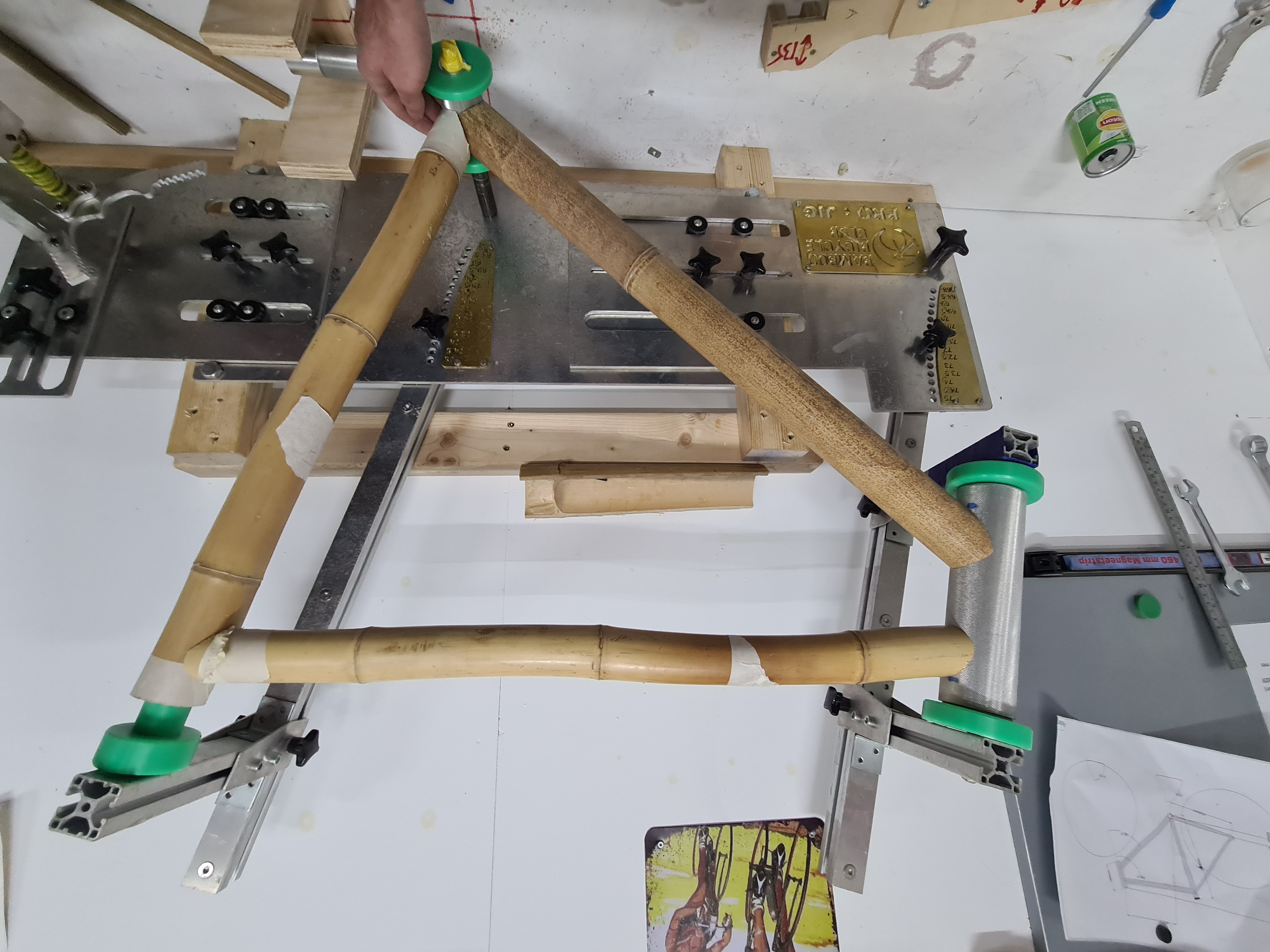 My gravel bike built from bamboo culms, joined with flax and epoxy resin at the nodes. Assembled at a Bamboo Bicycle Club workshop and completely hand finished in spare time.